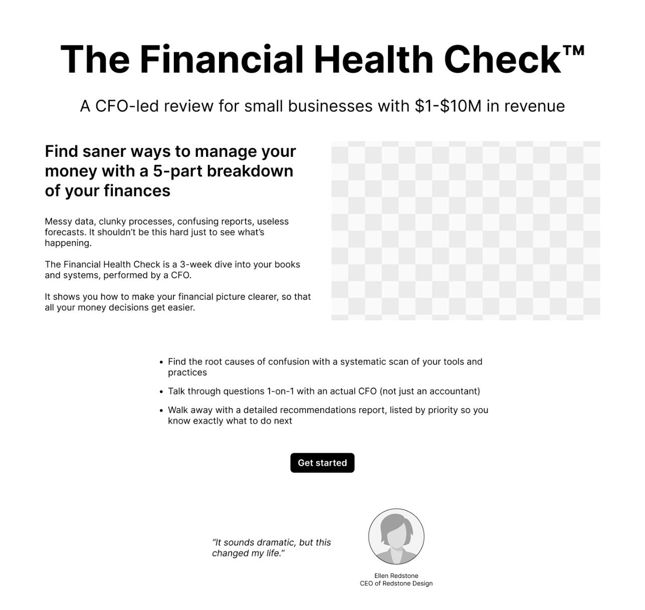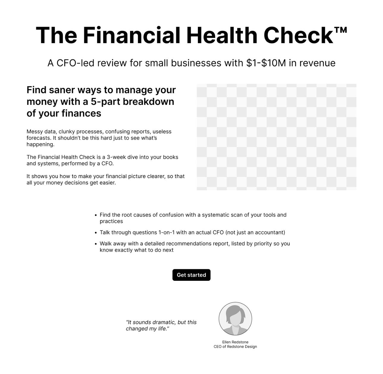 "Financial Health Check" sales page